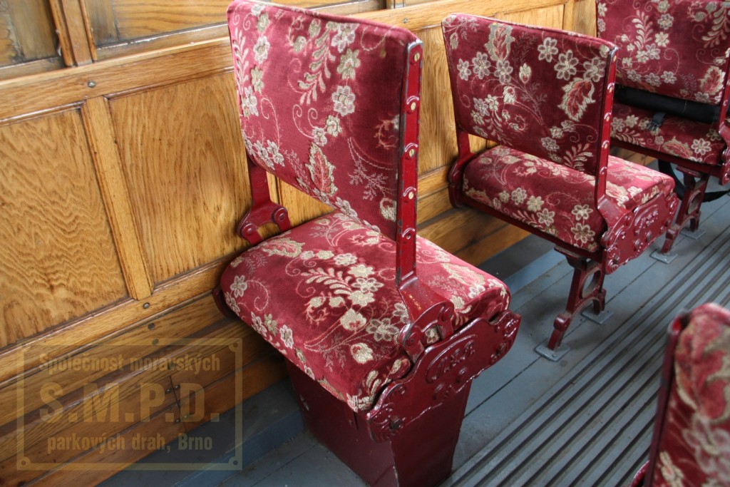Jelikož soupravy jezdí tam a zpět bez otáčení, jsou tomu uzpůsobena i opěradla,